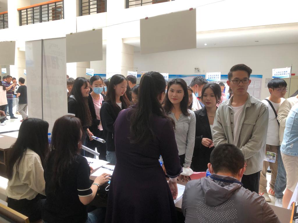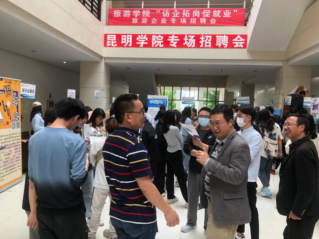 此次招聘会是旅游学院响应学校“访企拓岗”行动以来,继餐饮企业专场、国宾酒店专场后举办的第七次专场招聘活动,也是本学期到场企业最多、学生参与度最高的一场招聘会。到场招聘企业不仅有西游洞景区、凤龙湾景区、佳途旅游等优质景区旅游企业,还有昆明花之城豪生国际大酒店、昆明洲际酒店、云南金泉大酒店、晟世仟和酒店等高端酒店,更有昆明滇池国家旅游度假区国投置业有限公司、云南云投酒店发展有限公司、云南世博旅游景区投资管理有限公司等老牌国企。各企业均提供了多个岗位供毕业生选择,160余名毕业生在了解到企业情况后纷纷向心仪企业投递简历。