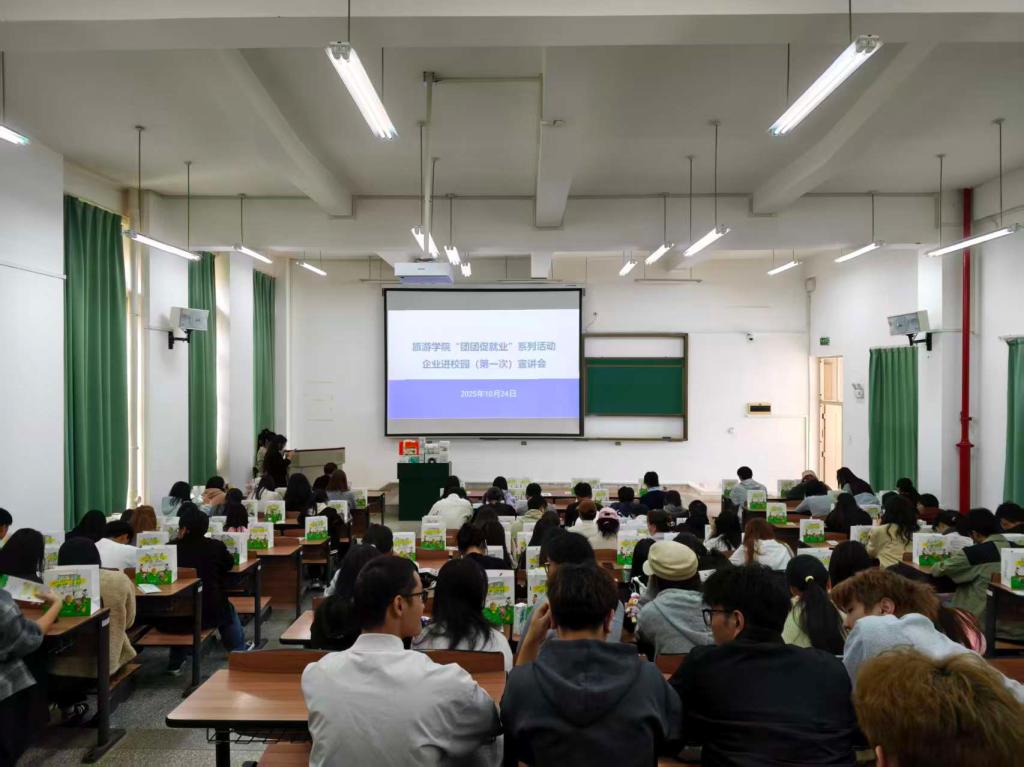 为发挥旅游学院共青团组织在服务青年就业中的积极作用,助力青年毕业生高质量就业,10月24日下午在博雅楼2103教室,旅游学院开展2026届毕业生第一次企业进校园活动,邀请新希望服务集团有限公司开展就业招聘宣讲。本次活动以“团团促就业”为主题,为青年搭建与企业零距离接触的平台,拓宽就业渠道,助力学院毕业生更加充分、更高质量就业。